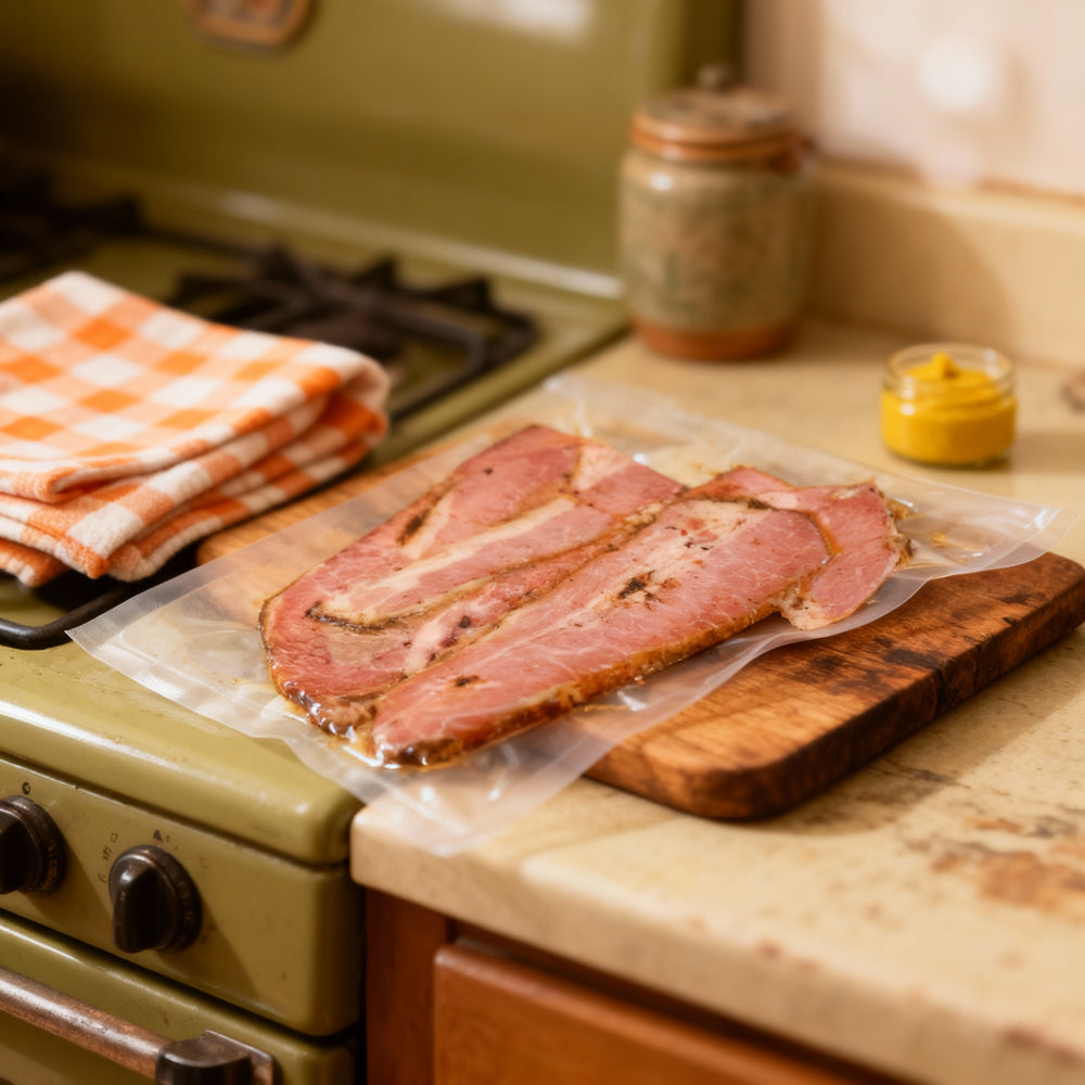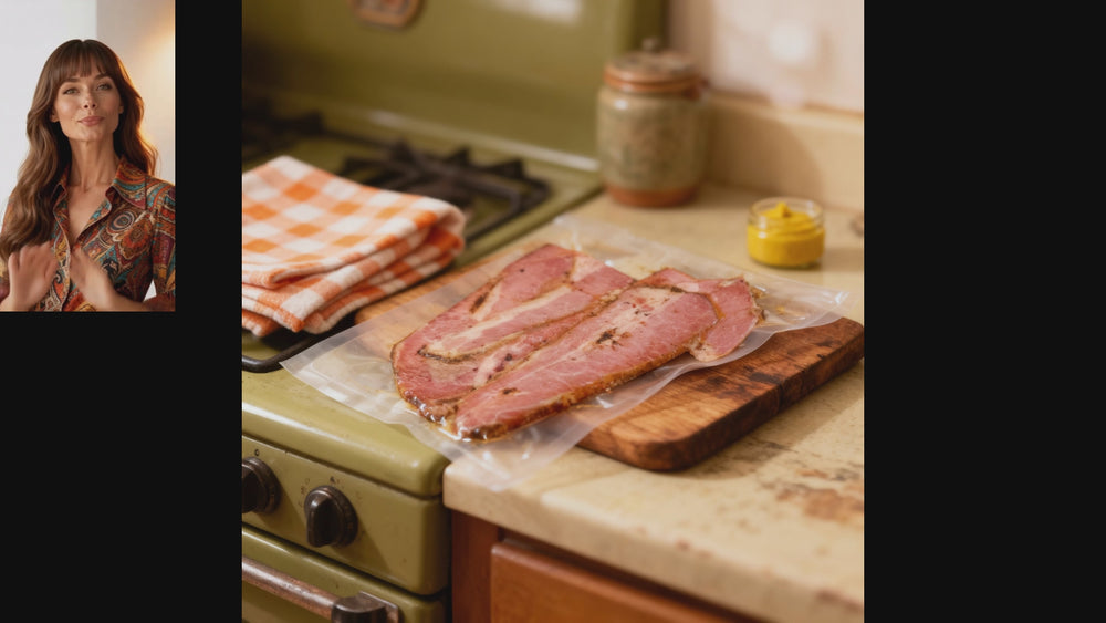Plus vous prolongez (30 à 60 minutes), plus le smoked-meat devient juteux et détendu. La patience est largement récompensée.À l’ouverture,faire glisser le contenu et empiler directement sur le pain. Un soupçon de moutarde et c’est prêt.Poids net : 170 g (±10 g)